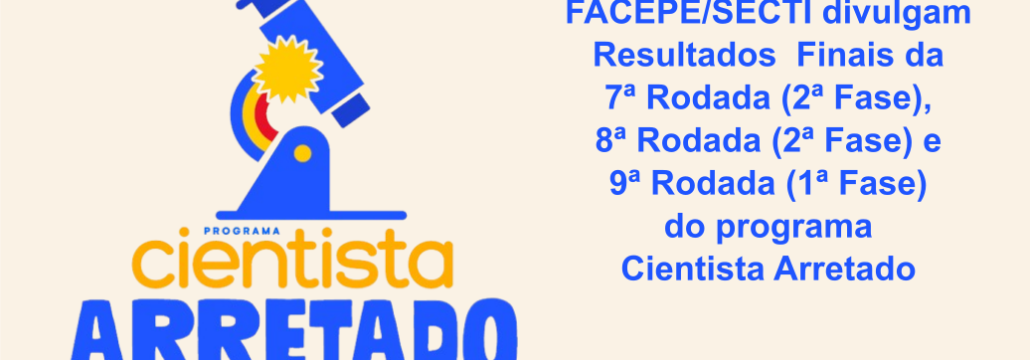 FACEPE/SECTI divulgam os Resultados Finais da 7ª Rodada (2ª Fase), 8ª Rodada (2ª Fase) e 9ª Rodada (1ª Fase) do Programa Cientista Arretado