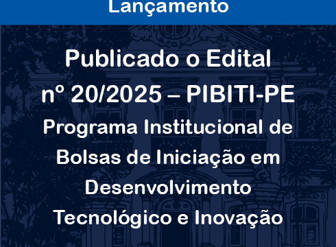 Publicado o Edital nº 20/2025 – PIBITI-PE: Programa Institucional de Bolsas de Iniciação em Desenvolvimento Tecnológico e Inovação, iniciativa inédita em âmbito estadual para apoiar Instituições de Ciência, Tecnologia e Inovação de Pernambuco (ICTs-PE) na execução de programas institucionais de iniciação que tenham enfoque na formação e no engajamento de recursos humanos em atividades de desenvolvimento tecnológico e inovação.
