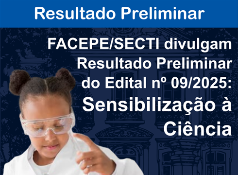 FACEPE/SECTI divulgam o Resultado Preliminar do Edital nº 09/2025 – Sensibilização à Ciência