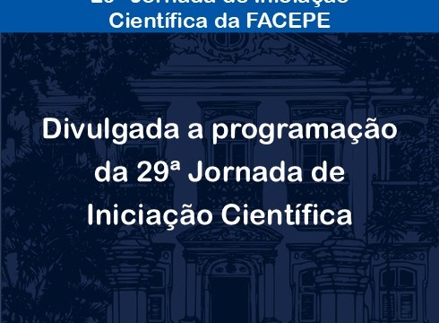 A Fundação de Amparo à Ciência e Tecnologia do Estado de Pernambuco (FACEPE), instituição do governo de Pernambuco vinculada à Secretaria de Ciência, Tecnologia e Inovação de Pernambuco (SECTI/PE), divulga a programação completa da 29ª Jornada de Iniciação Científica.