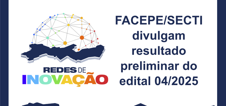 O Governo de Pernambuco e a Secretaria de Ciência, Tecnologia e Inovação (SECTI-PE), por meio da Fundação de Amparo à Ciência e Tecnologia do Estado de Pernambuco (FACEPE), divulgam o resultado preliminar do edital nº 04/2025 FACEPE – Apoio às Redes de Inovação de Pernambuco.