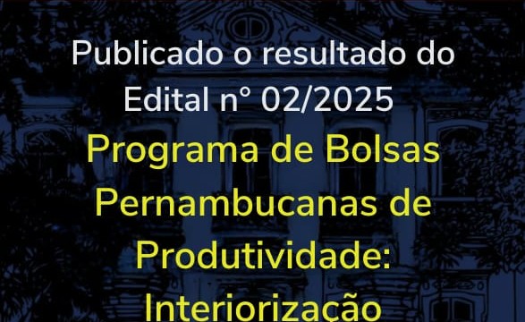 A Fundação de Amparo à Ciência e Tecnologia do Estado de Pernambuco (Facepe), vinculada à Secretaria de Ciência, Tecnologia e Inovação (Secti-PE), divulga o resultado final do Edital Facepe  nº 02/2025 – Programa de Bolsas Pernambucanas de Produtividade – Interiorização 2025.