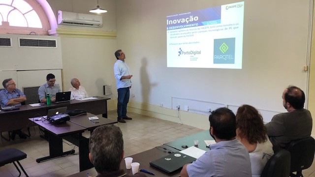 O presidente da Facepe, Prof. Dr. Fernando Jucá, fez uma apresentação das ações. Entre elas a Revista Inovação e Desenvolvimento, publicação institucional que vai abordar em seu segundo número os parques tecnológicos de Pernambuco. Jucá falou também sobre o encontro que vai reunir pesquisadores apoiados pelo Edital 04/2016 de estudos sobre o Zika Vírus. O evento vai acontecer na próxima terça-feira (18) pela manhã, na sede da Fundação.