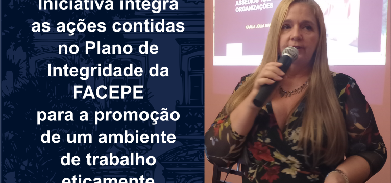 A Fundação de Amparo à Ciência de Tecnologia do Estado de Pernambuco – FACEPE, instituição do Governo do Estado, vinculada à Secretaria de Ciência, Tecnologia e Inovação – SECTI PE, promoveu na manhã da última terça-feira(22), palestra sobre Assédio Moral nas Organizações, com a especialista em gestão pública e vice presidente da Associação Brasileira de Ouvidores (ABO), Karla Júlia Marcelino.