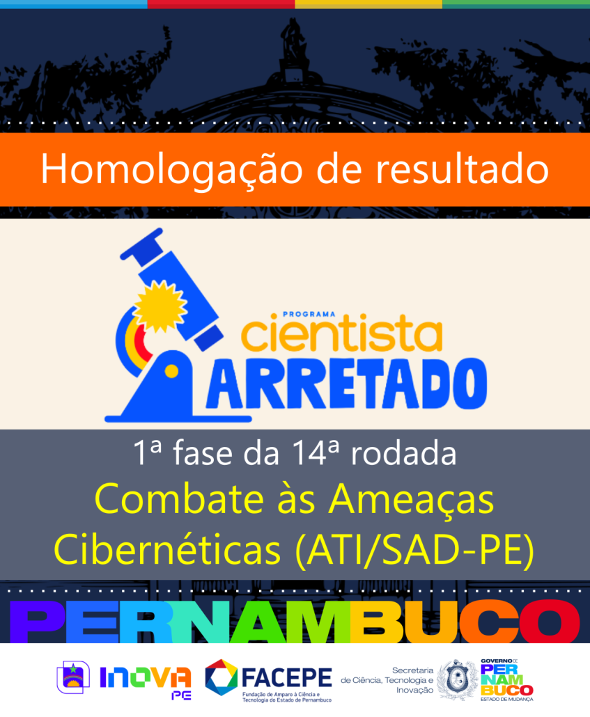A Fundação de Amparo à Ciência e Tecnologia do Estado de Pernambuco (Facepe), por meio da Secretaria de Ciência, Tecnologia e Inovação (Secti-PE), publicou a homologação do resultado da 14ª rodada do Programa Cientista Arretado, referente à 1ª fase da chamada aberta pelo Adendo nº 03 ao Edital nº 40/2024. Com investimento de R$ 1,05 milhão, a rodada contempla a temática de Combate às Ameaças Cibernéticas, com desafio da Agência Estadual de Tecnologia da Informação (ATI), vinculada à Secretaria de Administração do Estado de Pernambuco (SAD‑PE).