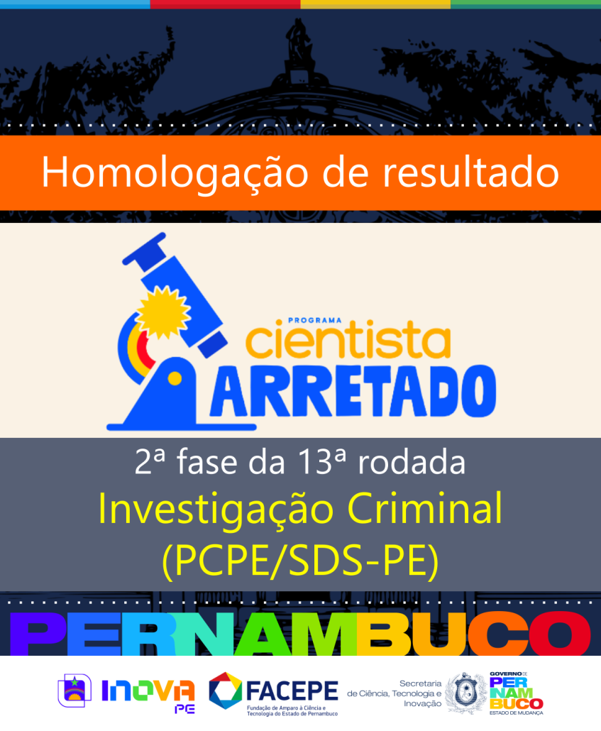 A Fundação de Amparo à Ciência e Tecnologia do Estado de Pernambuco (Facepe), por meio da Secretaria de Ciência, Tecnologia e Inovação (Secti-PE), publicou a homologação de resultado da 13ª rodada do Programa Cientista Arretado, referente à 2ª fase da chamada aberta pelo Adendo nº 02 ao Edital nº 40/2024. Com investimento de R$ 1,05 milhão, a rodada contempla a temática de Investigação Criminal, com desafio da Polícia Civil do Estado de Pernambuco (PCPE), vinculada à Secretaria de Defesa Social (SDS-PE).