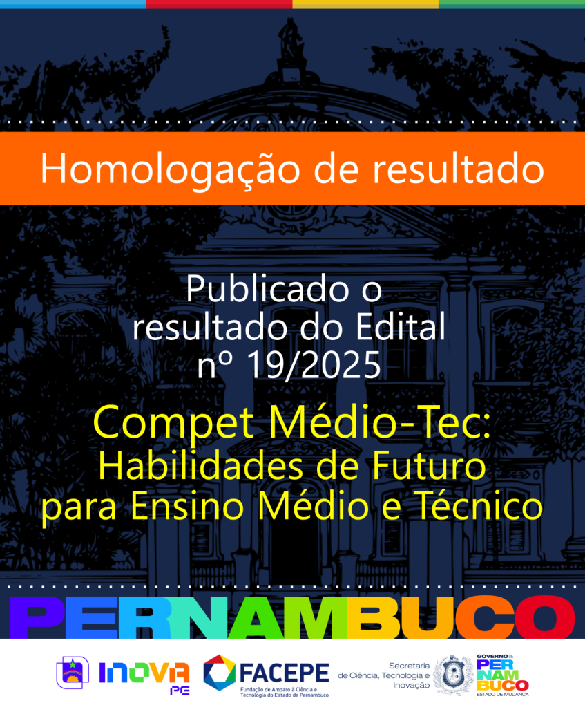 Facepe, Secti-PE e SEE-PE publicam a homologação do resultado do Edital nº 19/2025 – Compet Médio-Tec: Habilidades de Futuro para o Ensino Médio e Técnico