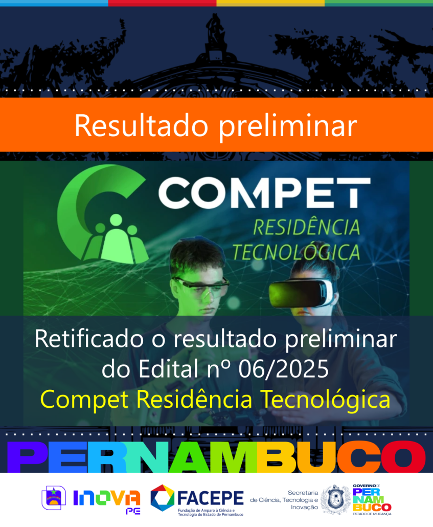 Facepe e Secti-PE retificam o resultado preliminar do Edital nº 06/2025 – Compet Residência Tecnológica
