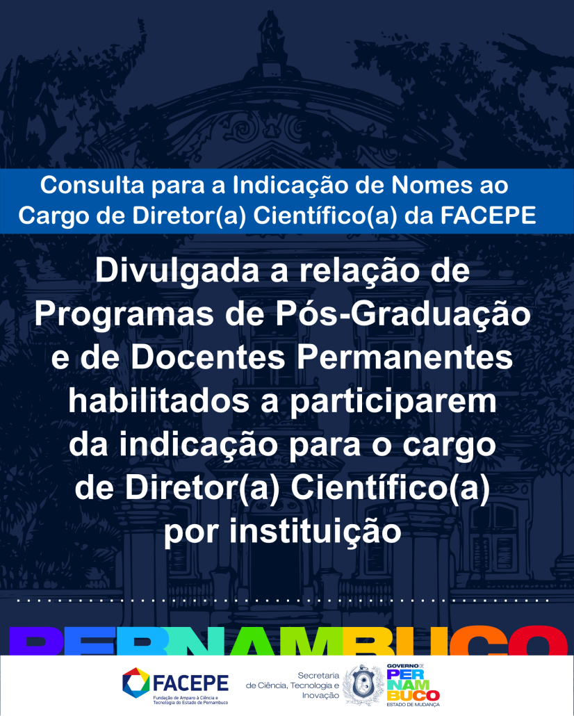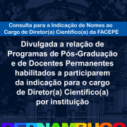 Divulgada lista dos Programas de Pós-Graduação e seus respectivos docentes habilitados a participarem da indicação à vaga para Diretor(a) Científico(a) da FACEPE