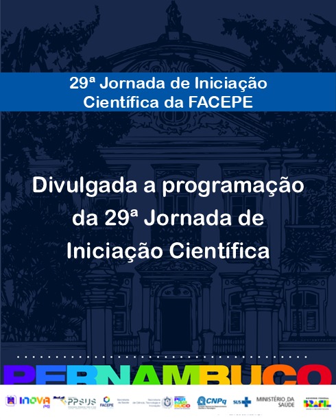 A Fundação de Amparo à Ciência e Tecnologia do Estado de Pernambuco (FACEPE), instituição do governo de Pernambuco vinculada à Secretaria de Ciência, Tecnologia e Inovação de Pernambuco (SECTI/PE), divulga a programação completa da 29ª Jornada de Iniciação Científica.