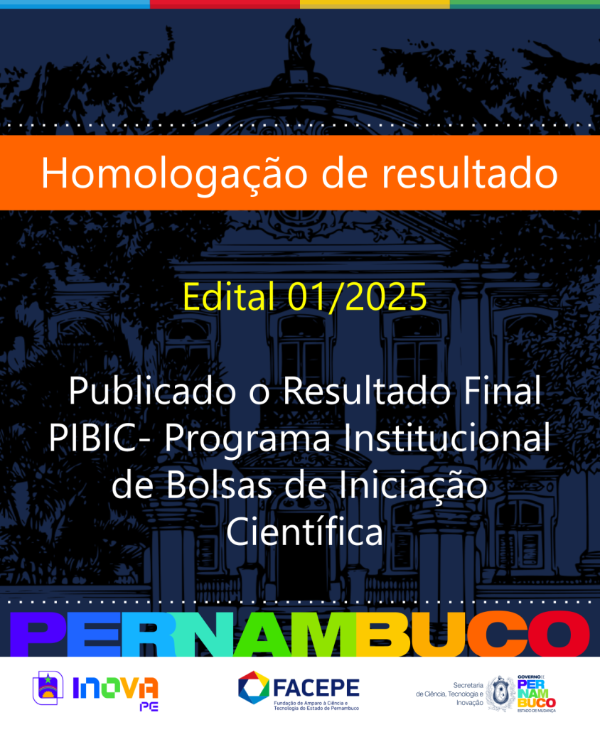 A Fundação de Amparo à Ciência e Tecnologia do Estado de Pernambuco (Facepe), vinculada à Secretaria de Ciência, Tecnologia e Inovação (SectiI-PE), divulgou, nesta sexta-feira (05), o resultado final do Edital Facepe 01/2025 (Programa Institucional de Bolsas de Iniciação Científica – PIBIC 2025).