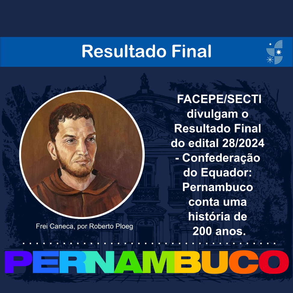 O Governo de Pernambuco, por meio da Secretaria de Ciência, Tecnologia e Inovação SECTI-PE, a partir da Fundação de Amparo à Ciência e Tecnologia do Estado de Pernambuco – FACEPE, divulga o Resultado final do edital 28/2024 – Confederação do Equador: Pernambuco conta uma história de 200 anos. No contexto das comemorações do bicentenário da Confederação do Equador, o edital convidou docentes da rede estadual de ensino médio e ensino técnico, bem como docentes de Instituições de Ciência, Tecnologia e Inovação de Pernambuco – ICTs-PE, a apresentarem propostas multimídia de caráter lúdico e didático relacionadas à comemoração dos 200 anos da Confederação do Equador (1824-2024).
