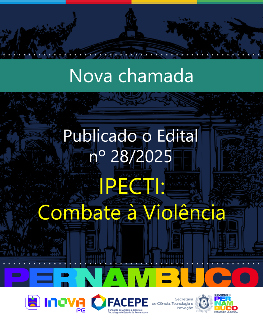 O Governo de Pernambuco, por meio da Secretaria de Ciência, Tecnologia e Inovação (Secti-PE) e da Fundação de Amparo à Ciência e Tecnologia do Estado de Pernambuco (Facepe), lançou o Edital nº 28/2025, que convida pesquisadores e pesquisadoras vinculados a Instituições de Ciência, Tecnologia e Inovação sediadas no estado (ICTs-PE) a apresentarem propostas para a constituição do Instituto Pernambucano de Ciência, Tecnologia e Inovação (IPECTI): Combate à Violência.