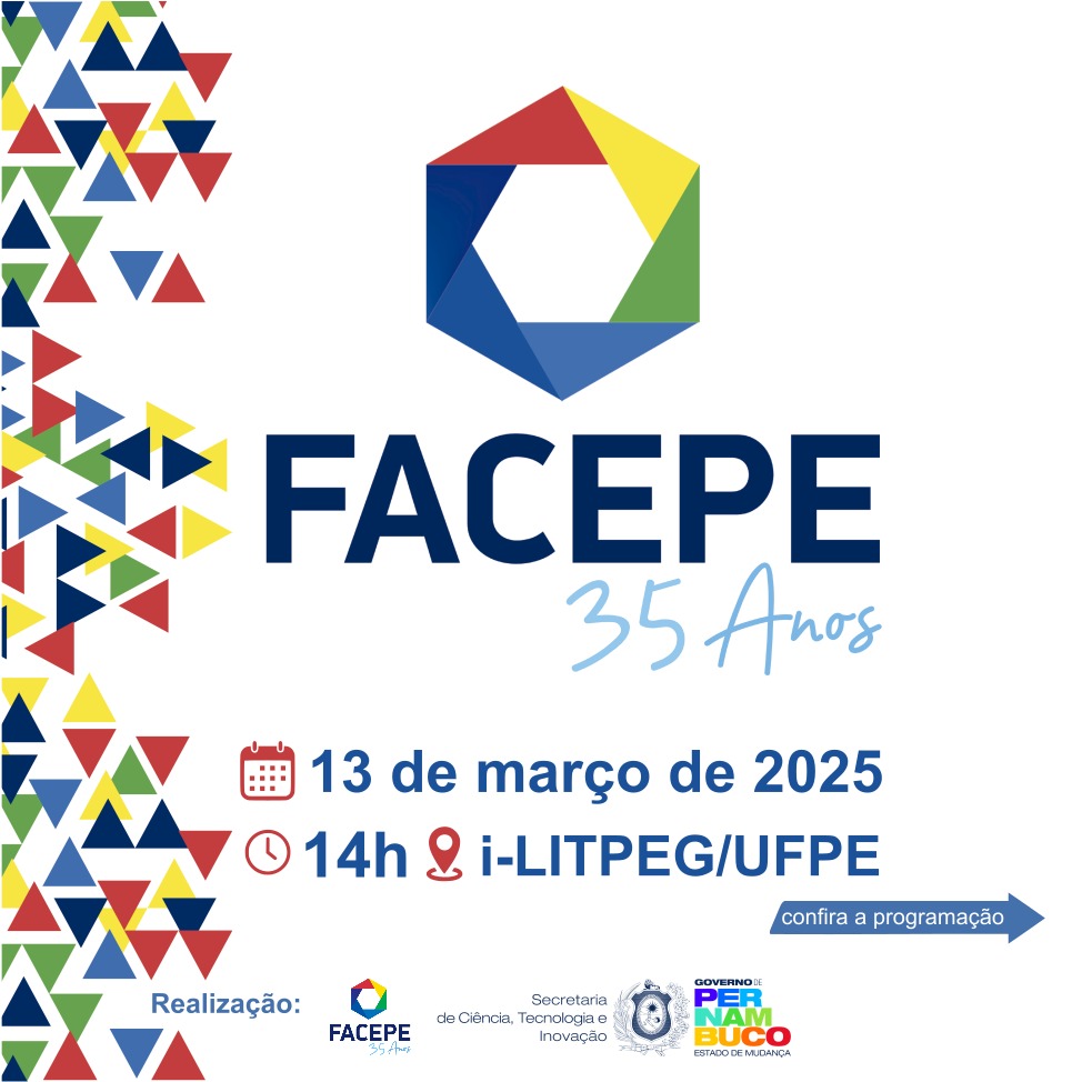 A Fundação de Amparo à Ciência e Tecnologia do Estado de Pernambuco (FACEPE), instituição do Governo do Estado, vinculada à Secretaria de Ciência, Tecnologia e Inovação de Pernambuco (SECTI), realiza a celebração dos seus 35 anos, no dia 13 de março, no auditório do Instituto de Pesquisa em Petróleo e Energia da Universidade Federal de Pernambuco – iLITPEG/UFPE. A comemoração marca um momento especial para reconhecer trajetórias de excelência na pesquisa e inovação no Estado, além de projetar um futuro de desenvolvimento científico em Pernambuco. Na ocasião, haverá o  lançamento da nova edição da revista da FACEPE, uma homenagem póstuma à Diretora Científica da Fundação, a professora Helen Khoury, além da entrega dos Prêmios FACEPE 2025 de Ciência, Tecnologia e Inovação.
