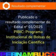 A Fundação de Amparo à Ciência e Tecnologia do Estado de Pernambuco (Facepe), vinculada à Secretaria de Ciência, Tecnologia e Inovação de Pernambuco (Secti–PE), divulgou nesta segunda‑feira (20/10) o segundo resultado complementar de convocação da lista de espera do Edital nº 01/2025, referente à concessão de bolsas do Programa Institucional de Bolsas de Iniciação Científica – Pibic para 2025/2026.