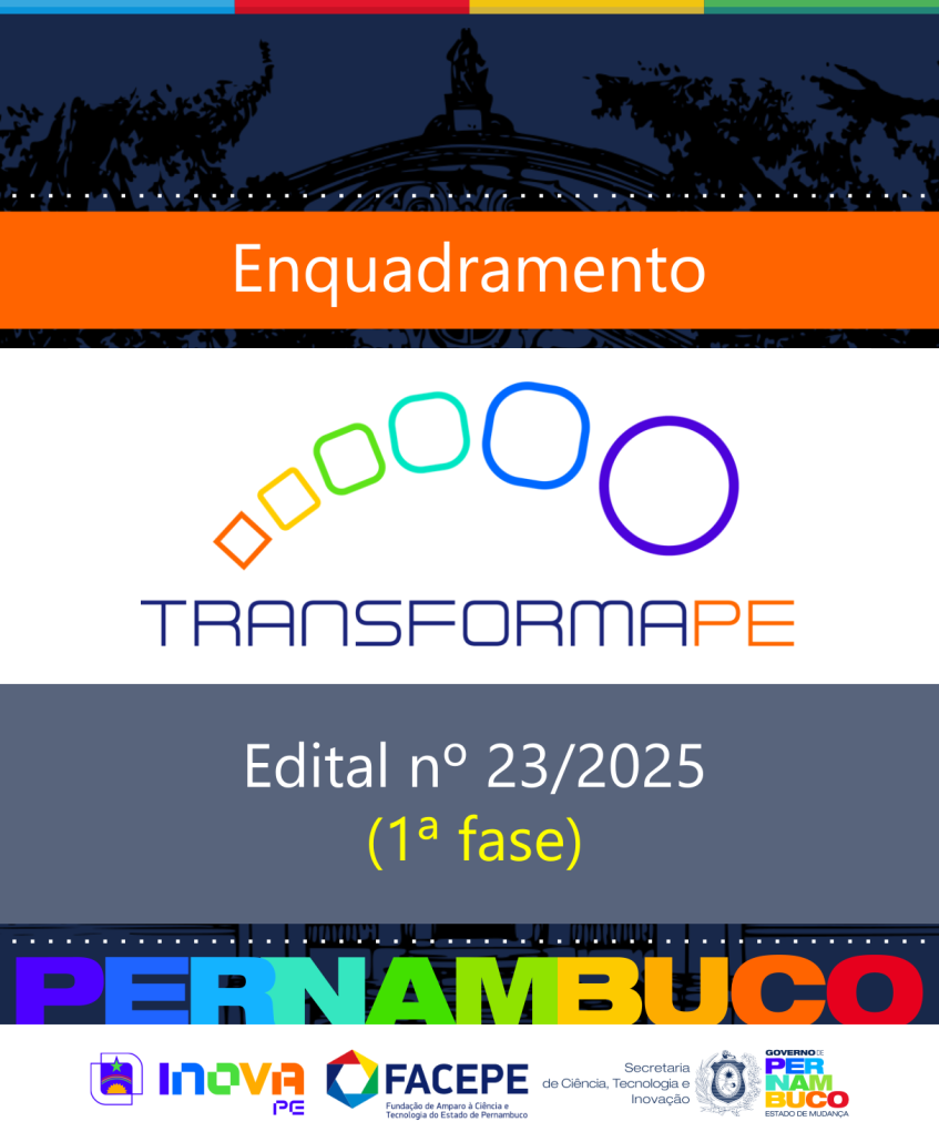 Concluída a etapa de interposição e análise de recursos, a Fundação de Amparo à Ciência e Tecnologia do Estado de Pernambuco (Facepe), em parceria com a Secretaria de Ciência, Tecnologia e Inovação de Pernambuco (Secti‑PE), torna público o resultado do enquadramento das propostas submetidas à 1ª fase do Edital nº 23/2025 – Transforma PE.