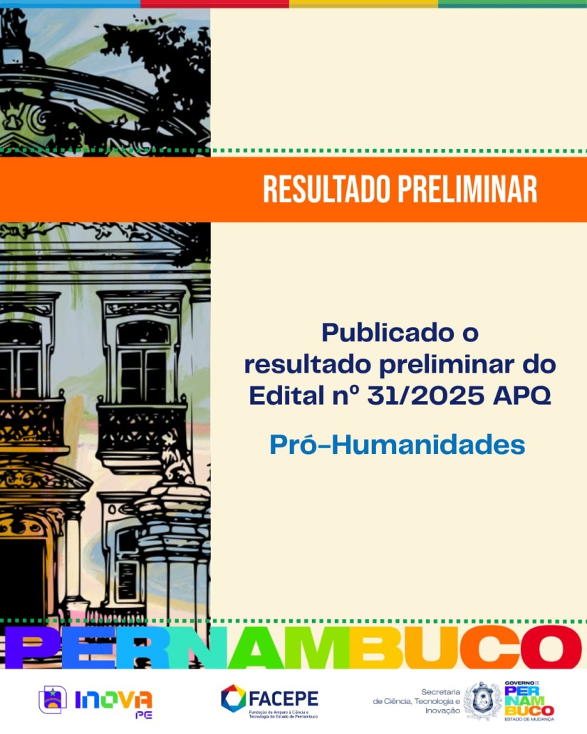 Facepe divulga resultado preliminar do Edital nº 31/2025 – APQ Pró-Humanidades