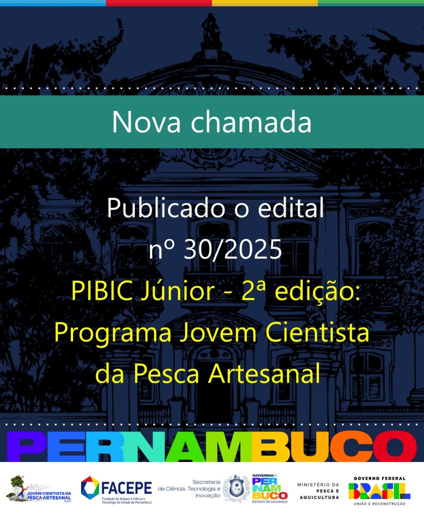 A Fundação de Amparo à Ciência e Tecnologia do Estado de Pernambuco (Facepe), vinculada à Secretaria de Ciência, Tecnologia e Inovação (Secti-PE), e a Secretaria Nacional da Pesca Artesanal (SNPA), do Ministério da Pesca e Aquicultura (MPA), lançaram a segunda edição do edital do Programa Jovem Cientista da Pesca Artesanal (PIBIC Júnior). As inscrições seguem abertas até o dia 30 de setembro de 2025.