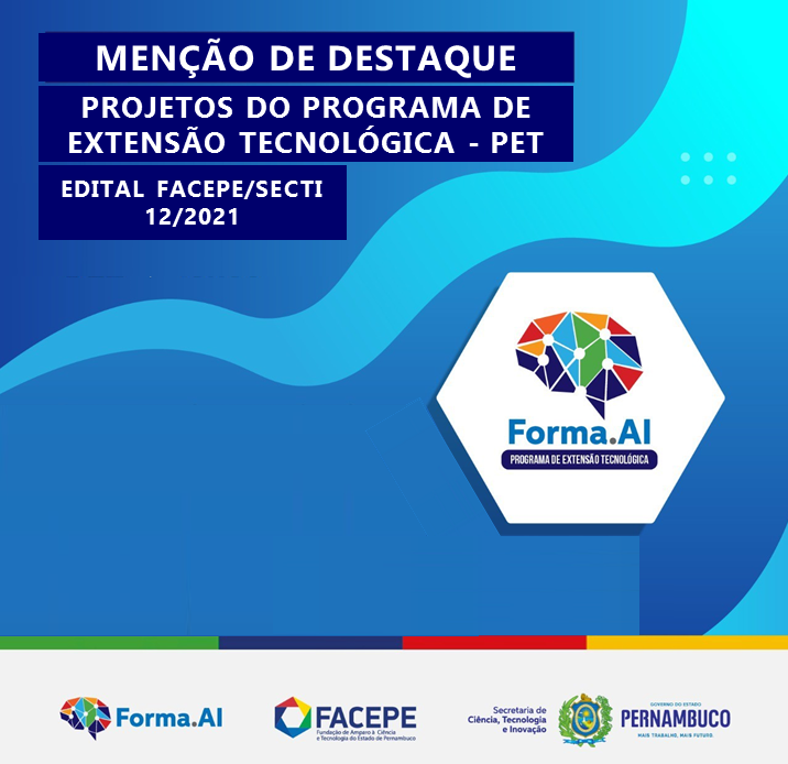 O Programa de Extensão Tecnológica (PET), que integra o Forma.AI, maior política pública de formação de pessoas nas habilidades de futuro de Pernambuco, divulga os 31 projetos de extensão tecnológica que receberam a Menção de Destaque durante o Seminário de Integração e Avaliação Final, realizado no dia 21 de dezembro de 2021.