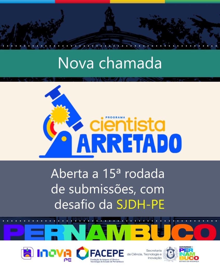 O Programa Cientista Arretado é uma iniciativa do Governo de Pernambuco, realizada por meio da Secretaria de Ciência, Tecnologia e Inovação (Secti-PE) e da Facepe, que tem como objetivo fomentar inovações voltadas à solução de desafios enfrentados por órgãos da administração pública estadual. O programa incentiva a cooperação entre o governo e pesquisadores seniores, juntamente com seus grupos de pesquisa vinculados a Instituições de Ciência, Tecnologia e Inovação (ICTs) de Pernambuco.