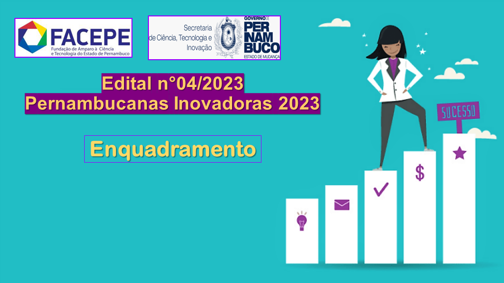 A Fundação de Amparo à Ciência e Tecnologia do Estado de Pernambuco – FACEPE, vinculada à Secretaria de Ciência, Tecnologia e Inovação – SECTI, torna público o ENQUADRAMENTO das propostas submetidas ao Edital n° 04/2023 – Pernambucanas Inovadoras 2023, correspondente a 1ª etapa de análise na qual verificou-se o atendimento aos critérios de elegibilidade do referido Edital. As propostas enquadradas seguirão a tramitação para as próximas etapas do Julgamento.