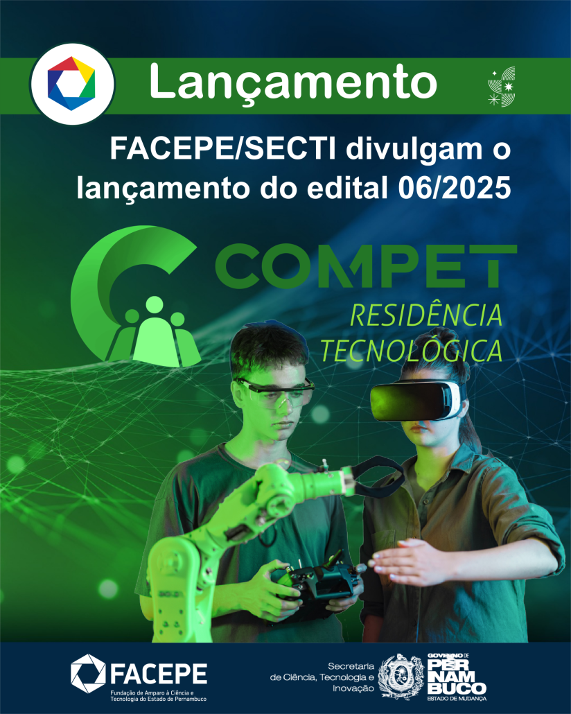 O Governo de Pernambuco via Secretaria de Ciência, Tecnologia e Inovação (SECTI-PE) e Fundação de Amparo à Ciência e Tecnologia do Estado de Pernambuco (FACEPE), divulgam o Edital de nº 06/2025 – Compet Residência Tecnológica.