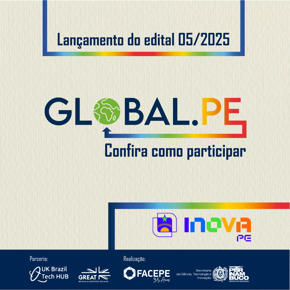 Nesta quarta-feira (22), o Governo de Pernambuco e a Secretaria de Ciência, Tecnologia e Inovação (SECTI-PE), por meio da Fundação de Amparo à Ciência e Tecnologia do Estado de Pernambuco (FACEPE), lançaram em evento realizado na sede da SECTI, o edital nº 05/2025 – Global PE. A iniciativa conta com a parceria do Consulado do Reino Unido e com recursos do Fundo INOVAR-PE, gerido pela Agência de Empreendedorismo de Pernambuco (AGE), vinculada à Secretaria de Desenvolvimento Profissional e Empreendedorismo (SEDEPE).