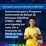 Prorrogação de submissão ao Programa Institucional de Bolsas de Iniciação Científica – PIBIC 2025