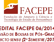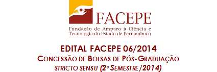 A Fundação de Amparo à Ciência e Tecnologia do Estado de Pernambuco (Facepe) prorrogou o prazo de submissão de propostas ao Edital 06/2014 – Programa de Concessão de Bolsas de Pós-Graduação Stricto Sensu (2º Semestre/2014). A nova data para submissão é 11 de julho de 2014. São 80 bolsas de mestrado e 60 de doutorado, destinadas a estudantes ingressantes a partir do 2º semestre deste ano. O edital é aberto a todos os Programas de Pós-Graduação (PPGs) reconhecidos pela CAPES e vinculados às instituições científicas e tecnológicas (ICTs) sediadas em Pernambuco. As solicitações só podem ser feitas pelos coordenadores dos PPGs.