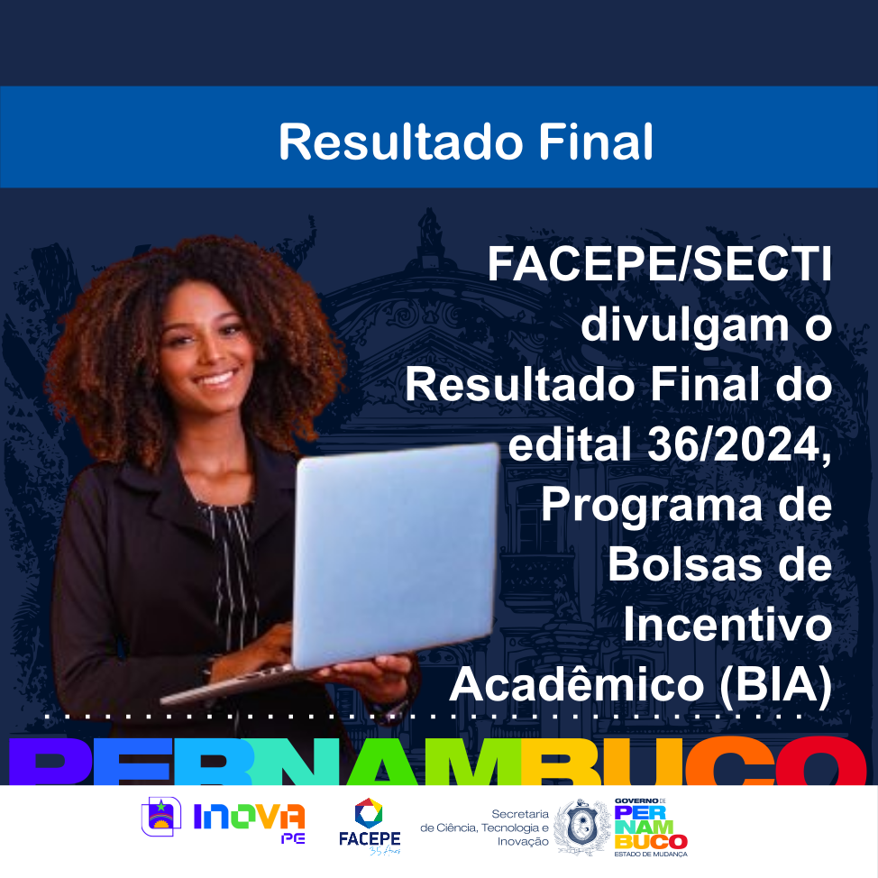 A Fundação de Amparo à Ciência e Tecnologia do Estado de Pernambuco – FACEPE, vinculada Secretaria de Ciência, Tecnologia e inovação do estado SECTI/PE, divulga o Resultado Final do programa de Bolsas de Incentivo Acadêmico – BIA, distribuídas ao longo de duas entradas no ano de 2025. O resultado contemplou 07 (sete) instituições que tiveram suas propostas enquadradas e aprovadas no Edital 36/2024.