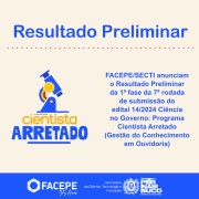 Resultado Preliminar da 1ª Fase da 7ª Rodada de Submissão ao Programa Cientista Arretado
