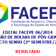 A Fundação de Amparo à Ciência e Tecnologia do Estado de Pernambuco (Facepe) concluiu o processo de avaliação dos projetos proponentes ao edital de concessão de bolsas de pós-graduação stricto sensu (mestrado e doutorado) para o 2º semestre de 2014. Cento e quarenta bolsas serão concedidas pela Fundação, sendo 80 de mestrado e 60 de doutorado. O período para indicação dos bolsistas para os projetos aprovados, incluindo a entrega da documentação impressa pelo coordenador do PPG, será de 20 de agosto a 05 de setembro de 2014.