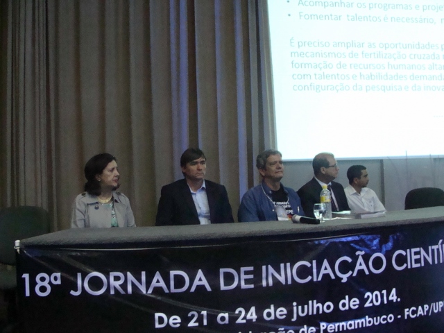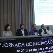 “Esta jornada é feita para vocês. O nível dos trabalhos foi muito alto e mostrou o quanto vocês estão bem preparados para a carreira científica”, declarou o diretor científico da Facepe, Paulo Cunha. Junto com ele compuseram a mesa, além do secretário José Bertotti e da pesquisadora Lucia Melo, o diretor da FCAP/UPE, Marcos Meira, e o coordenador das comissões avaliadoras da Jornada, Márcio Vilar.