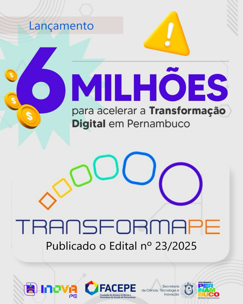 A Fundação de Amparo à Ciência e Tecnologia do Estado de Pernambuco (Facepe), em parceria com a Secretaria de Ciência, Tecnologia e Inovação (Secti-PE), lançou o Edital nº 23/2025 – Transforma PE, voltado ao fomento de soluções inovadoras para micro, pequenas e médias empresas de base tradicional no estado. O edital prevê o investimento de R$ 6 milhões em projetos de transformação digital aplicados a Arranjos Produtivos Locais (APLs) considerados estratégicos para o desenvolvimento regional.